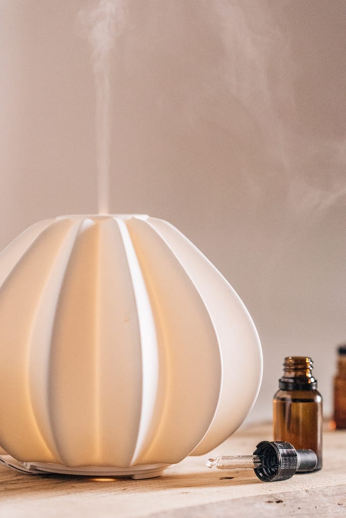Verwende entweder einen Kaltwasser- Diffuser, um die Ölpartikel in der Luft zu verteilen, oder gib ein, zwei Tropfen auf die Handflächen. Verreibe sie und atme tief ein. Duftlampen eignen sich nicht für die Anwendung ätherischer Öle, denn sie vertragen keine Hitze!