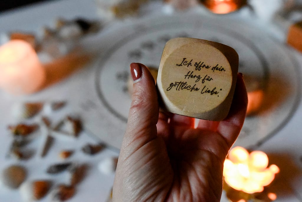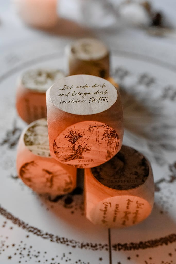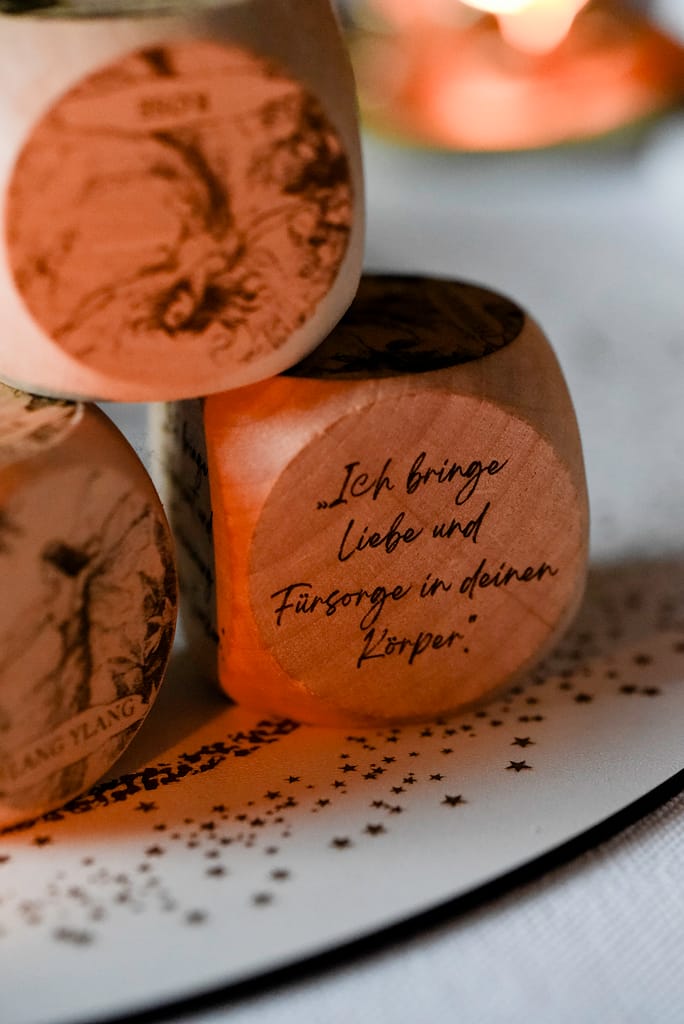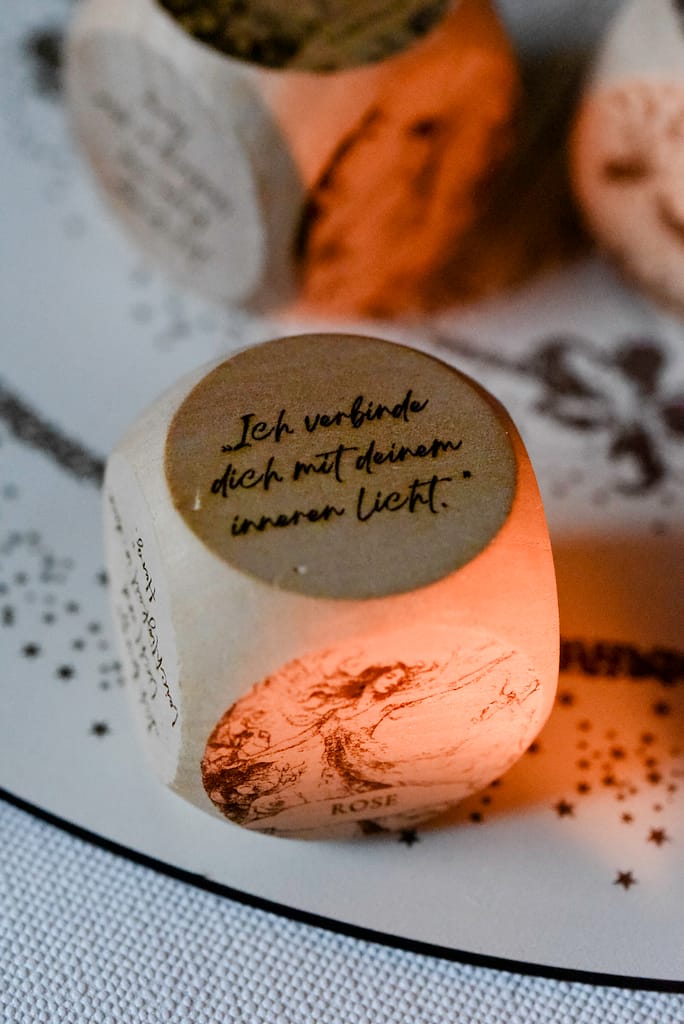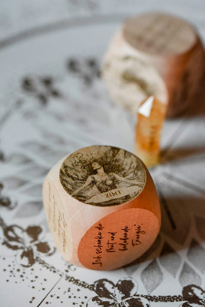Wähle einen Würfel und dessen Duft, der für ein Ziel oder eine Affirmation steht.