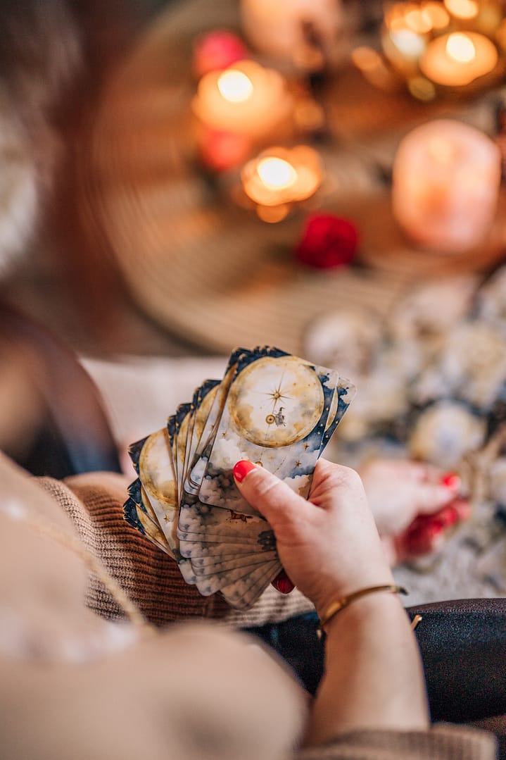 Kartenarbeit, Duft und Heilsteine verbinden sich zu einer sanften Begleitung für Klarheit, innere Balance und Verbindung zu dir selbst.
