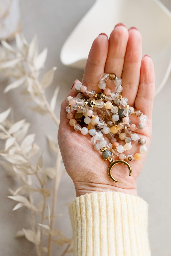 Aus deiner Intention entsteht die Auswahl der passenden Heilsteine für dein Schmuckstück – ob Armband, Kette oder Mala – das ich anschließend in liebevoller Handarbeit für dich fertige.