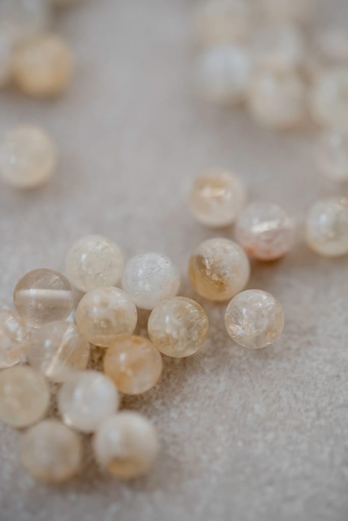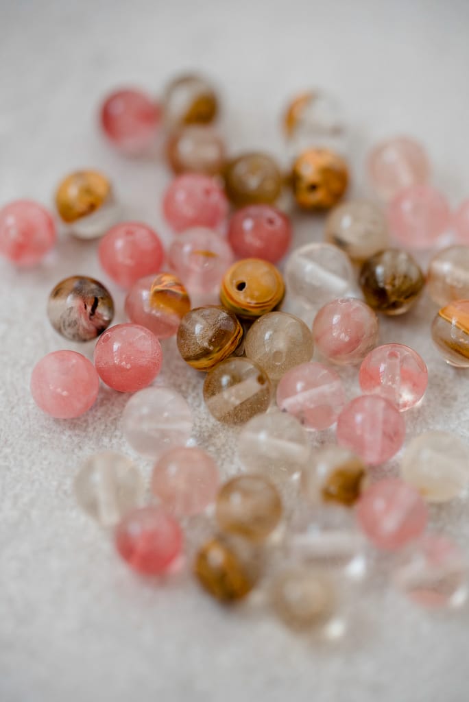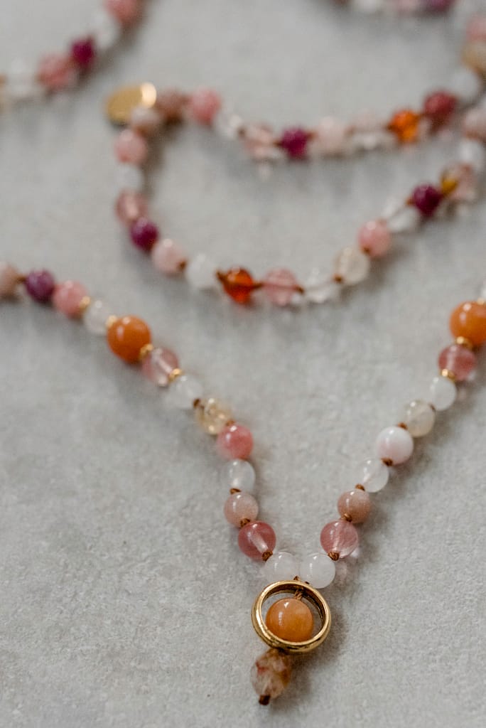 Während der Session wählen wir auch die Edelsteine für deine Mala aus. Steine tragen unterschiedliche Qualitäten – manche unterstützen Klarheit, andere Mut, Herzöffnung oder innere Balance.