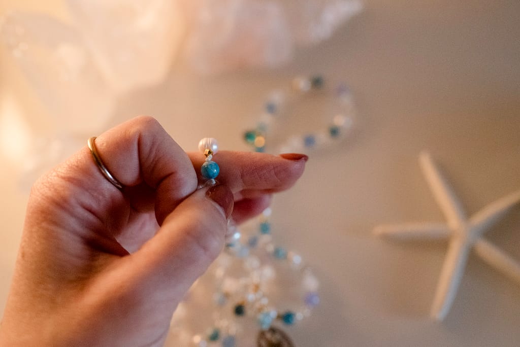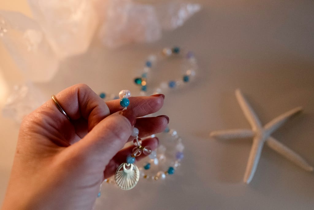 Aus dieser Begleitung entsteht eine individuelle Mala, die anschließend in liebevoller Handarbeit geknüpft wird.