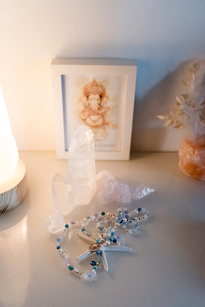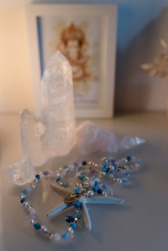 Ob in der Meditation, im Alltag oder als Erinnerung an eine Intention – die Mala lädt dazu ein, immer wieder einen Moment innezuhalten und nach innen zu spüren.